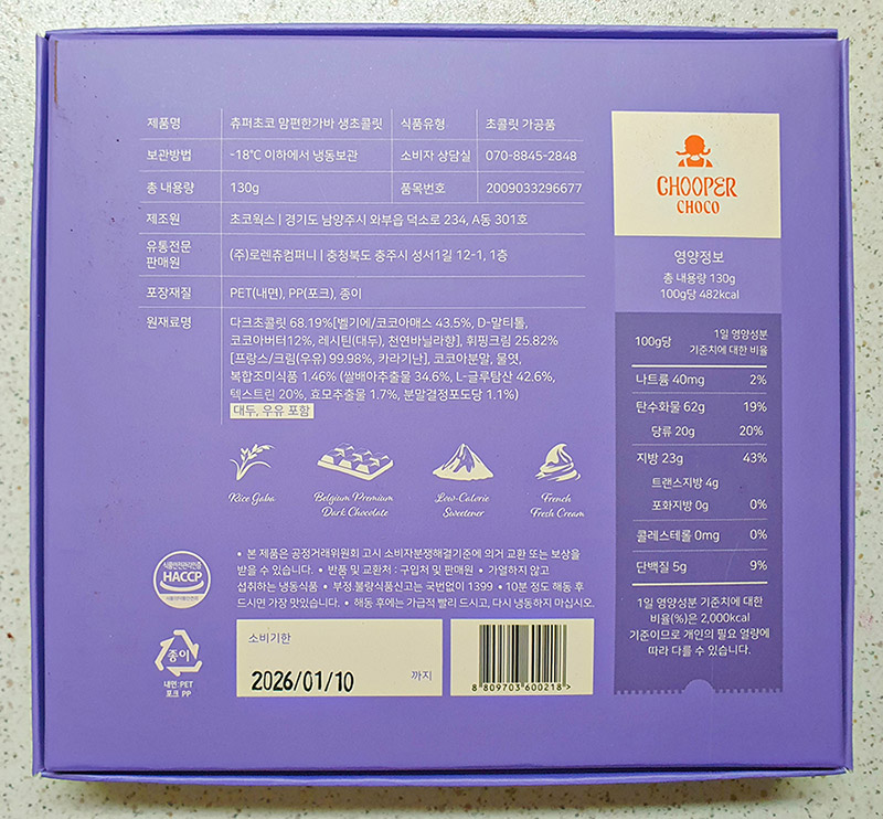 츄퍼초코 생코촐릿은 파베 초콜릿을 좋아하는 분들이라면