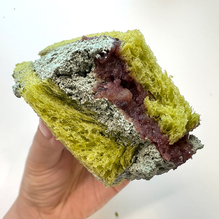 빵은 색깔만 초록색인 아니고 쑥이 들어간 쑥식빵이라고 해요.