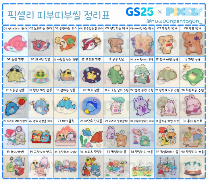 총 40장의 띠부띠부씰이 들어가 있습니다.
