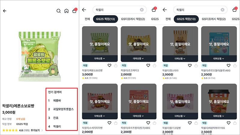 GS어플인 우리동네 GS에서 픽셀리가 인기 검색어 4위를 달리고 있더라고요.